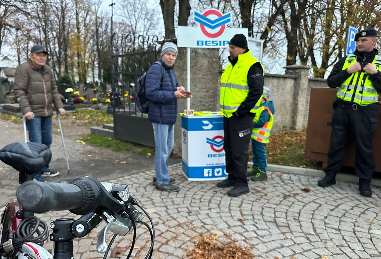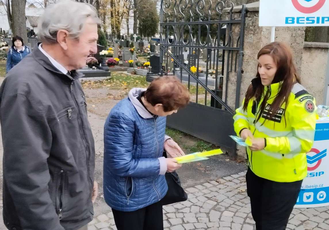 Z důvodu nadcházejícího podzimního období byla u chotěbořského hřbitova dne 31.10.2024 uspořádána preventivní akce zaměřená na chodce. S oslovenými občany jsme si společně s krajskou koordinátorkou BESIPu Veronika Vošická Buráňová připomínali funkci reflexních prvků a také jsme u stánku BESIP zmínili základní zásady bezpečného chování v silničním provozu. Osloveným byl následně věnován edukativní materiál a reflexní pásek. Děkuji Veronice a vedoucímu strážníku Městské policie Chotěboř Petru Doležalovi za provedení zdařilé akce.
