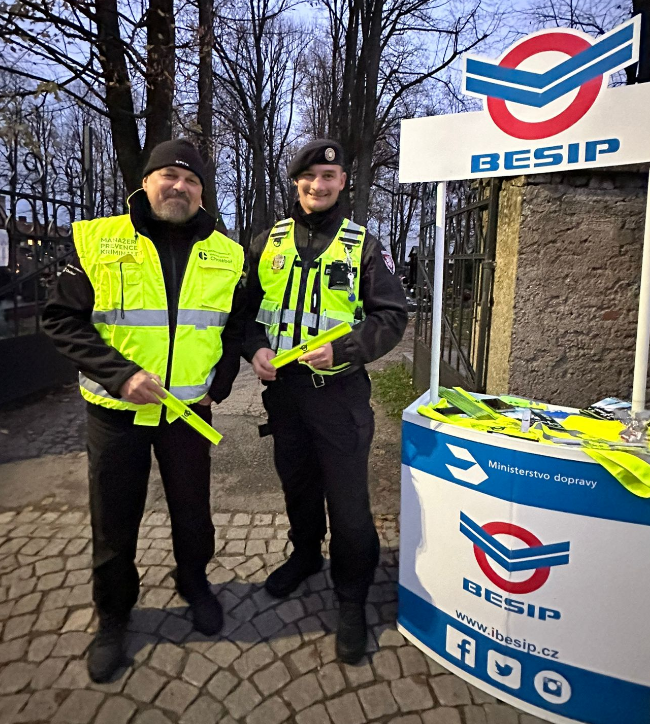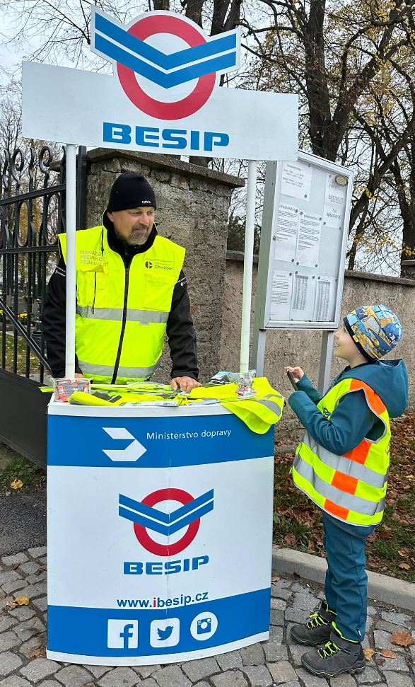 Z důvodu nadcházejícího podzimního období byla u chotěbořského hřbitova dne 31.10.2024 uspořádána preventivní akce zaměřená na chodce. S oslovenými občany jsme si společně s krajskou koordinátorkou BESIPu Veronika Vošická Buráňová připomínali funkci reflexních prvků a také jsme u stánku BESIP zmínili základní zásady bezpečného chování v silničním provozu. Osloveným byl následně věnován edukativní materiál a reflexní pásek. Děkuji Veronice a vedoucímu strážníku Městské policie Chotěboř Petru Doležalovi za provedení zdařilé akce.